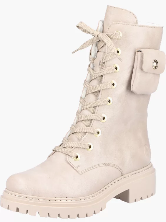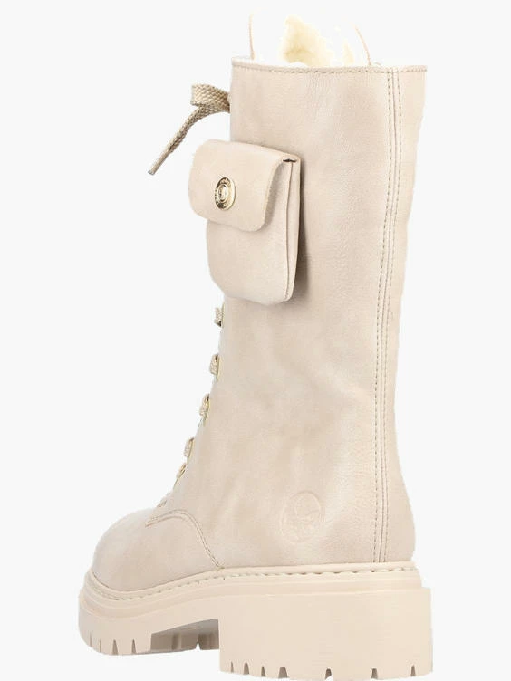 Cooler Style und dennoch warme Füße? Diese lässigen Biker Boots mit hohem Schaft kann man sowohl im Alltag als auch in der Freizeit zu vielen Looks kombinieren! Die clevere Kombination aus Schnürung und Reißverschluss ermöglicht ein einfaches An- und Ausziehen. Optische Highlights sind eine angenähte und ultraangesagte Mini-Tasche an der Seite. Die leichte und schockabsorbierende Chunky Sohle bietet anhaltendes Wohlgefühl – auch an langen Tagen. Ein weiteres Plus ist die weiche Decksohle. Warmfutter hält die Füße den ganzen Tag über kuschelig-warm. Was will man mehr?