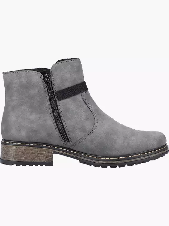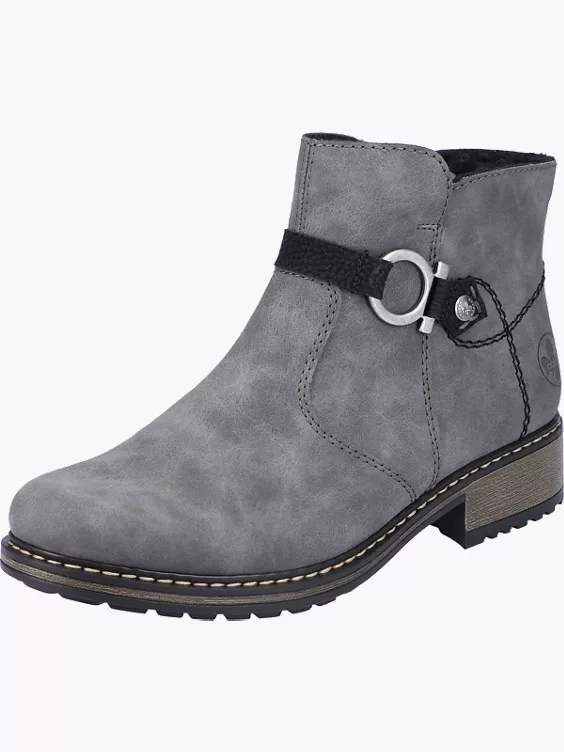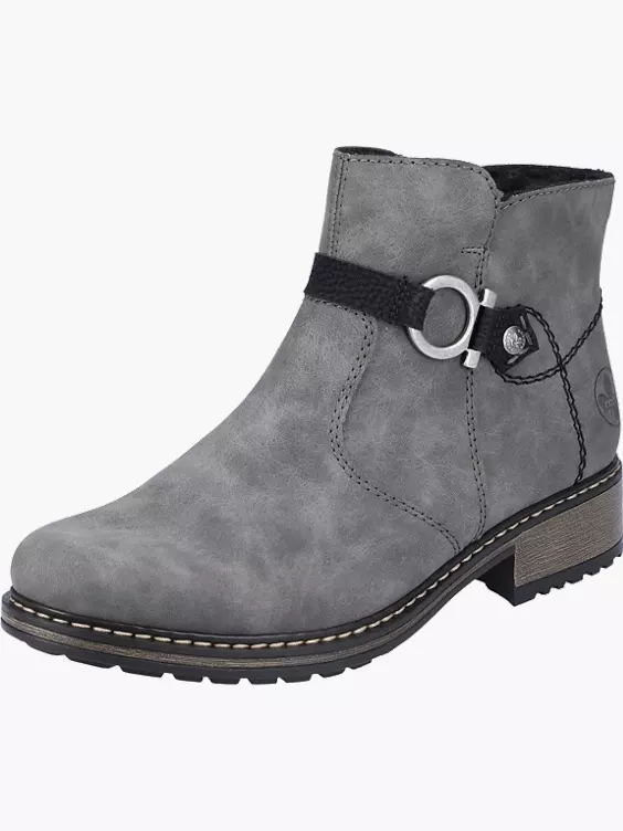 Cooler Style und dennoch warme Füße? Diese anthraziten Biker Boots mit knöchelhohem Schaft von Rieker sind super lässig und total bequem. Ein seitlicher Reißverschluss ermöglicht einen schnellen und bequemen Einstieg. Eine seitliche Deko-Schnalle rundet das moderne Design perfekt ab. Die leichte und schockabsorbierende Profilsohle mit kleinem Absatz verspricht Trittsicherheit und die Decksohle ist superweich. Kuscheliges Warmfutter hält die Füße garantiert den ganzen Tag schön warm. Was will man mehr?