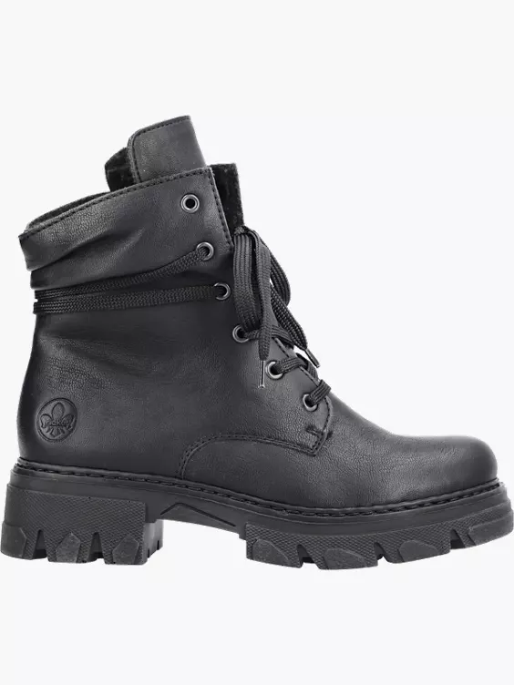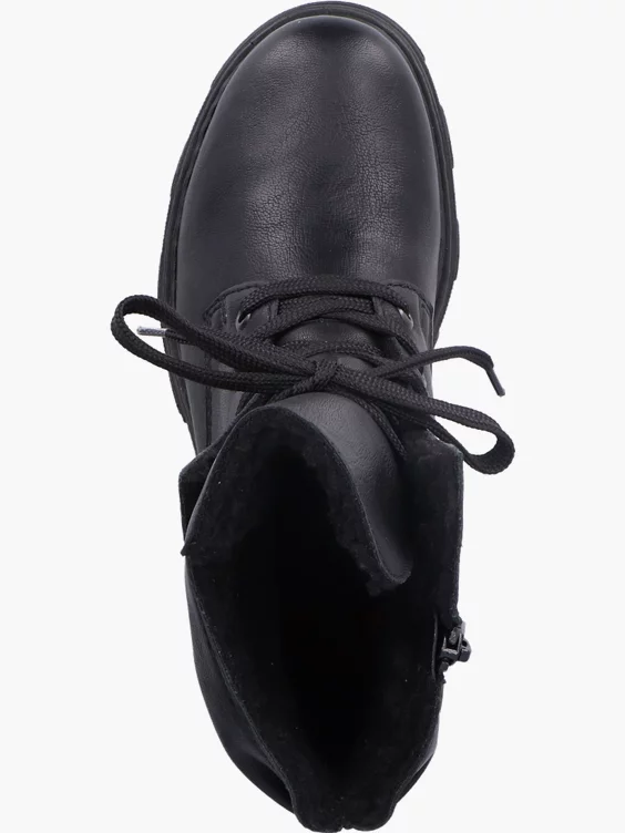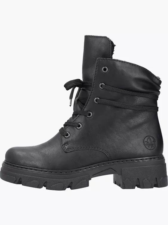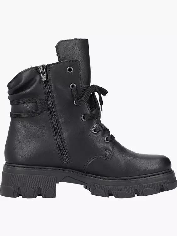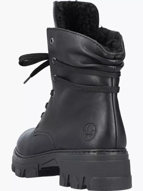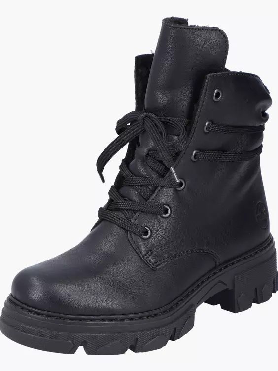 Lieblingsschuhpotential! Rebellisch cool und total angesagt sind diese nachtschwarzen Biker Boots mit hohem Schaft von Rieker. Die clevere Kombination aus Schnürung und Reißverschluss ermöglicht ein einfaches An- und Ausziehen. Die leichte und schockabsorbierende Chunky Sohle verwöhnt die Füße zusätzlich bei jedem Schritt. Außerdem ist die Decksohle superweich. Die Füße bleiben dank dem Warmfutter garantiert den ganzen Tag warm! Worauf warten?