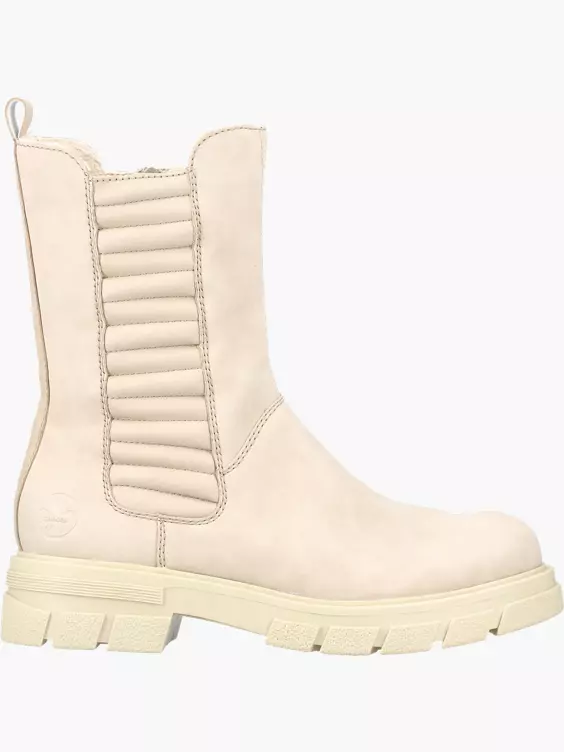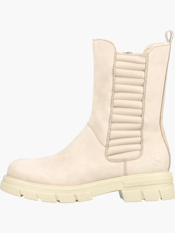 Wir lieben Beige! Diese Chelsea Boots mit mittelhohem Schaft von Rieker punkten mit klassischem und sportivem Design. Ein seitlicher Reißverschluss ermöglicht einen schnellen und bequemen Einstieg und die stylische Fersenlasche hilft beim Einstieg. Die leichte und robuste Profilsohle überzeugt auf ganzer Linie und die Decksohle ist superweich. Einfach reinschlüpfen und wohlfühlen.