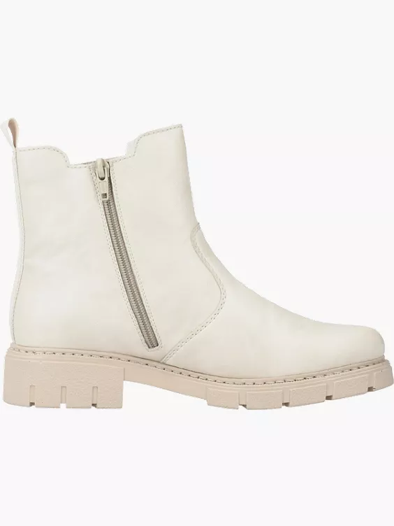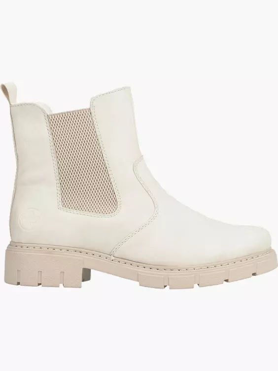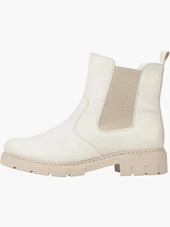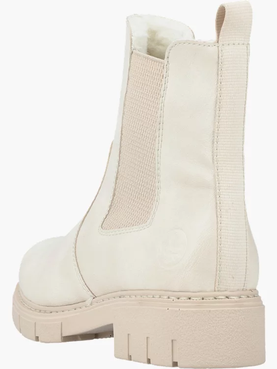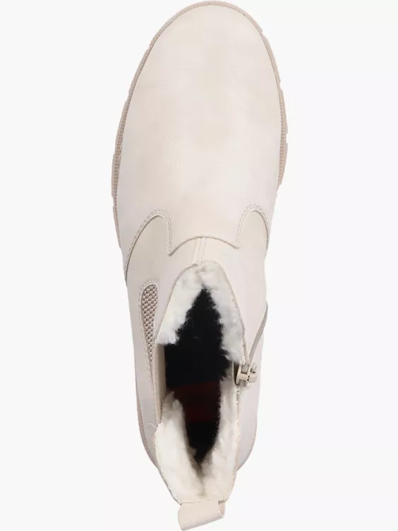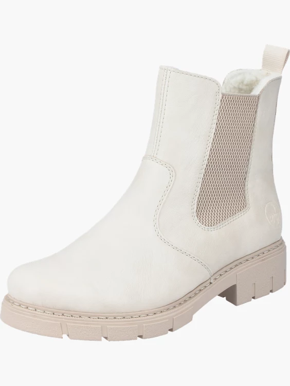 Rockig und schick zugleich: Diese cremeweissen Chelsea Boots mit stylischem, höherem Schaft bekommen mit der beigen Sohle ein Style- Upgrade. Der seitliche Reißverschluss zusammen mit dem für Chelsea Boots typischen Stretcheinsatz ermöglichen ein einfaches An- und Ausziehen. Die leichte und schockabsorbierende Profilsohle mit kleinem Absatz verspricht Trittsicherheit und die Decksohle ist superweich. Die Füße bleiben dank dem Warmfutter garantiert den ganzen Tag warm! Trageluxus pur!