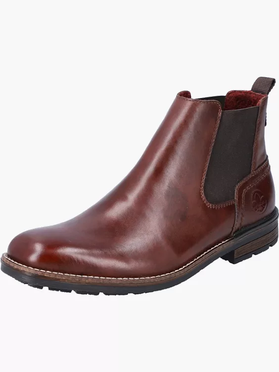Schön schlicht und trotzdem modern. Diese kastanienbraunen Chelsea Boots in Glattlederoptik von Rieker geben dem Fuß Freiraum und halten ihn dennoch sicher. Der Reißverschluss zusammen mit dem für Chelsea Boots typischen Elastikeinsatz ermöglichen ein einfaches An- und Ausziehen. Eine runde Kappe rundet den Look des Schuhs harmonisch ab. Die robuste und leichte Profilsohle mit kleinem Absatz gibt guten Halt auf Schritt und Tritt. Außerdem ist deinen Füßen durch die Komfortweite G 1/2 mehr Freiraum geboten. Modisches Wellness-Feeling im Stil von Rieker!