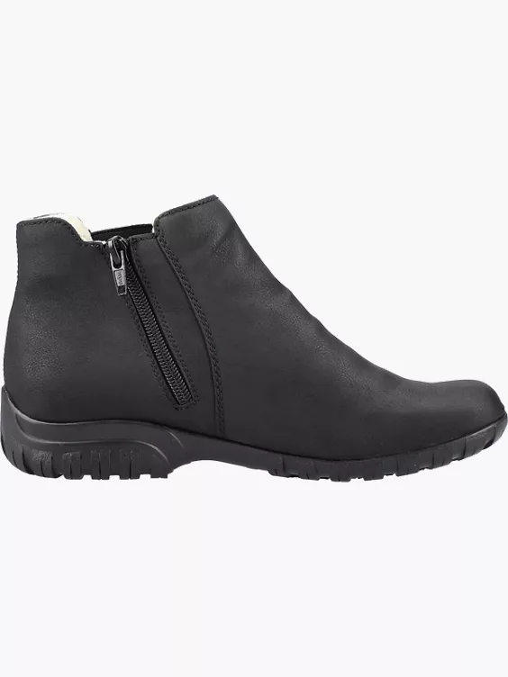 Urlaubsfeeling für die Füße! Diese tiefschwarzen Chelsea Boots mit knöchelhohem Schaft bekommen mit der schwarzen Sohle ein modisches Upgrade. Für bequemes An- und Ausziehen sorgt der seitliche Reißverschluss. Die robuste und leichte Profilsohle mit kleinem Absatz gibt guten Halt auf Schritt und Tritt. Außerdem ist deinen Füßen durch die Extraweite H mehr Raum geboten. Kuscheliges Warmfutter hält die Füße garantiert den ganzen Tag schön warm. Wohlge(h)fühl inklusive!