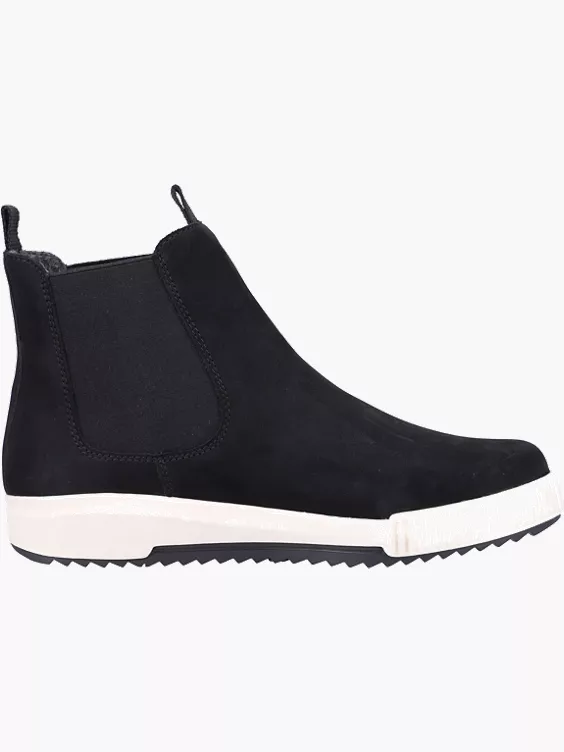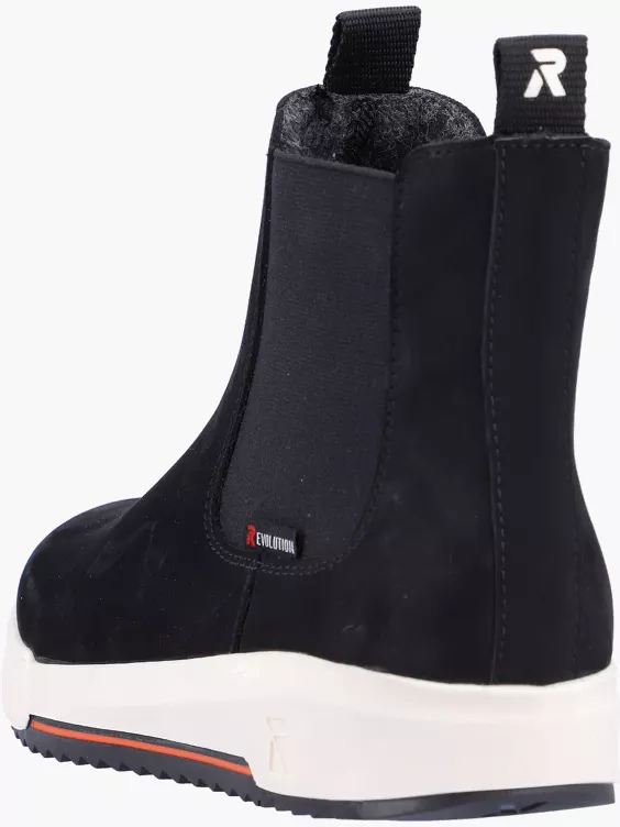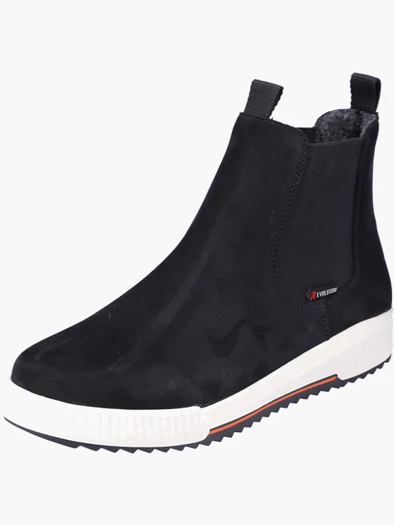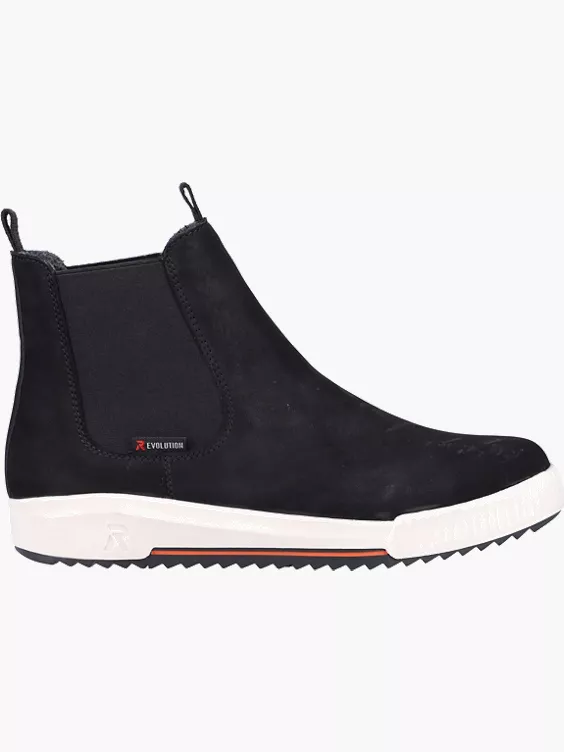 Schwarze, elegante Chelsea Boots gesucht? Wir haben da was! Diese Damen Chelsea Boots aus Rauleder von Rieker EVOLUTION überzeugen mit ihrer schicken und gleichzeitig lässigen Optik! Mit den seitlichen Gummizügen sind die Chelsea Boots schnell an- und ausgezogen. Die helle Sohle ist angenehm leicht und flexibel! Atmungsaktives Innenfutter und eine softe Einlegesohle zum Herausnehmen ergänzen die Komfortfeatures perfekt.